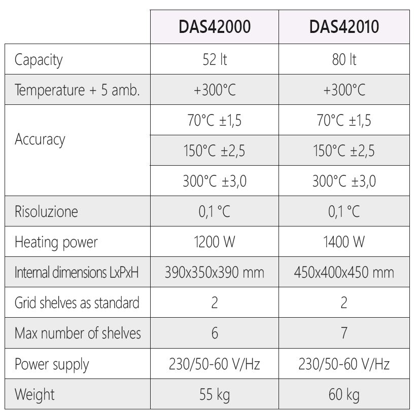 Tabella DAS42000_EN Published November 13, 2019. Size: 822 × 823 in DAS42000 Natural ventilation oven of 52 lt < Previous Next >